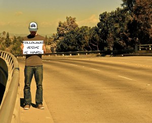 I think scripture is pretty clear. Being a Christian means you follow Christ. You turn your life over to Him and say, “Your way is better than my own.”  Some of you Sunday Schoolers are nodding your heads right now, better wait a minute.  It doesn’t mean you follow the church’s often nearsighted and broken version of Jesus. It means you follow Him. It doesn’t mean that you follow a book, any book. The Bible is awesome and authoritative, but the Scripture points to Jesus, whom we are to follow. It means that every day you get up and decide how you are going to follow Jesus today. It means you pray and do as He commands. It means you love as He loves and forgive as He forgives. It means you give up your own authority and rely on Him for guidance and direction.  It means you get together with other believers in whatever iteration of church happens to be sent to you and you share the road.